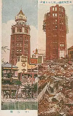 Burton také navrhl první japonský mrakodrap Rjóunkaku v tokijské Asakuse. Tato dvanáctipatrová budova o výšce 68,58 metru byla v době svého otevření v roce 1890 nejvyšší budovou v Tokiu. Tato osmiboká budova získala ikonický status symbolu moderního Japonska a chlubila se prvním japonským elektrickým výtahem. U příležitosti oslav otevření mrakodrapu Rjóunkaku, které se stalo tokijským zábavním centrem, pořídil Kazumasa Ogawa 100 snímků nejatraktivnějších tokijských gejš. V červenci roku 1891 pak uspořádal výstavu 100 albuminových portrétů gejš u příležitosti otevření Rjóunkaku a návštěvníci na výstavě hlasovali o nejoblíbenější gejšu.[6] Roku 1923 však byla budova neopravitelně poškozena při velkém zemětřesení.[3]