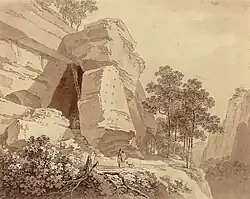 Obrázky, zvuky či videa k tématu Winterstein na Wikimedia Commons - Skála Winterstein - Zeughaus, Saské Švýcarsko