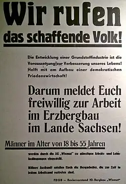 Ihned po skončení druhé světové války se sovětské orgány začaly zajímat o možnosti využití surovinových zdrojů, ležících v sovětské okupační zóně Německa. Mimořádná pozornost byla věnována zejména možnostem využití místních zásob uranu jako suroviny, nezbytné pro sovětský jaderný program a výrobu jaderných zbraní. Již 14. září 1945 bylo při 9. správě Ministerstva vnitra Sovětského svazu zřízeno "Saské průzkumné oddělení", jehož úkolem bylo zmapování ložisek uranové rudy v Krušných horách. Uvedené oddělení bylo přímo podřízeno vojenskému velení Rudé armády v sovětské okupační zóně.