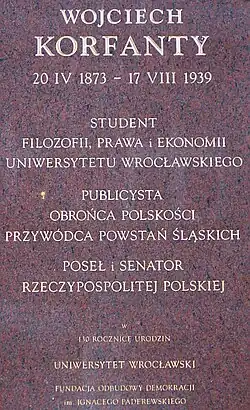 - ↑ ORZECHOWSKI, Marian. Wojciech Korfanty: biografia polityczna. [s.l.]: Zakład Narodowy im. Ossolińskich, 1975. Dostupné online. S. 39. (Polish)