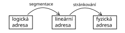 Pro přístup do paměti je u procesorů 80386 a vyšších ještě navíc v tomto režimu dostupné stránkování. Pomocí tohoto procesu je lineární adresa získaná po segmentaci ještě dále převáděna na fyzickou adresu (viz obrázek).