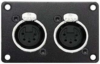 Pro správné použití DMX512 se využívá pětipinový konektor XLR5, který navíc přidává sekundární datový okruh.[5] XLR s pěti piny se také používá pro symetrické vedení stereo signálu (levý-hot, levý-cold, pravý-hot, pravý-cold a stínění).