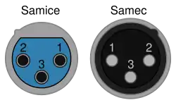 - ↑ Circular connectors – Detail specification for a range of multipole connectors (type 'XLR') [online]. International Electrotechnical Commission, 2004-03-08 [cit. 2022-11-26]. Dostupné online.