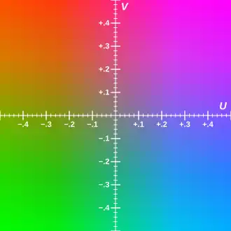 YUV je barevný model používaný v televizním vysílání v normě PAL a HDTV. Model k popisu barvy používá tříprvkový vektor [Y,U,V], kde Y je jasová složka a U a V jsou barevné složky. U je také někdy označováno jako B-Y a V odpovídá R-Y. Barevné složky se používají v rozsahu od −0.5 do +0.5, jasová složka má rozsah od 0 do 1. Zatímco jas je přenášen se všemi detaily, některé detaily v komponentách barevného signálu bez informací o jasu lze odstranit snížením rozlišení odpočtů (filtrování nebo zprůměrování).[1]