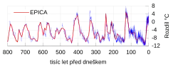 - ↑ JOUZEL, J.; MASSON-DELMOTTE, V.; CATTANI, O.; DREYFUS, G.; FALOURD, S.; HOFFMANN, G.; MINSTER, B. NOAA/WDS Paleoclimatology - EPICA Dome C - 800KYr Deuterium Data and Temperature Estimates. www.ncei.noaa.gov [online]. Dostupné online. doi:10.25921/8t7e-z147. (anglicky)