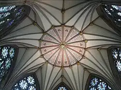 Vyznačuje se bohatě zdobenou hlavní chrámovou lodí v perpendikulárním slohu dokončenou roku 1338, velkým mozaikovým východním oknem zhotoveným roku 1408, největším středověkým mozaikovým oknem na světě. V severní příčné lodi se nachází okno pěti sester s oblouky vysokými 16 m a v jižní příčné lodi známé kruhové okno.