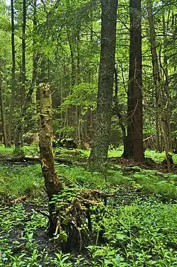 Přírodní památka Pod liščím kupem, koryto potoka se nachází v porostu vlevo -