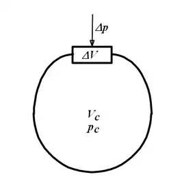 Změna tlaku představuje akustický tlak p a změna objemu představuje objemové posunutí (obdoba výchylky) Ya. Z rovnice lze dále vyjádřit poměr změny objemu a změny tlaku: