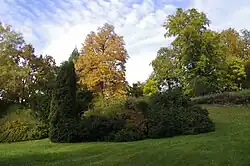 Inventarizace dřevin v roce 2010 zjistila v parku celkem asi 150 taxonů jehličnatých a listnatých stromů a keřů, což je o 50 méně než dává inventarizace v období 1979–1980. V letech 2013–2014 bylo vysazeno 80 listnatých a 18 jehličnatých stromů, 1129 keřů a dále trvalky a cibuloviny. Sortiment listnatých dřevin rozšířily např. dub bahenní, dub šarlatový, a velmi cenný dub velkoplodý, javor kapadocký, javor červený, či kaštanovník jedlý. Na jaře roku 2016 bylo v jednotlivých okruzích dřevěnými tabulkami označeno 49 vzácných dřevin. V západním okruhu je to 21 dřevin, mezi nimiž jsou pamodřín Kaempferův a bříza Maximovičova. Impozantním dojmem zde působí urostlý platan javorolistý. Jedná se například o korkovník amurský, katalpu trubačovitou, šácholan přišpičatělý, paulovnii plstnatou a liliovník tulipánokvětý. Hojně jsou zde zastoupeny jehličnany všech rodů. Najdeme zde metasekvoji čínskou, jedlovce kanadské, různé druhy cypřišů.