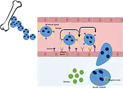 - 3. fáze: Chemotaktické faktory (chemokiny) uvolněné z různých buněk lákají fagocytární buňky z krve.
