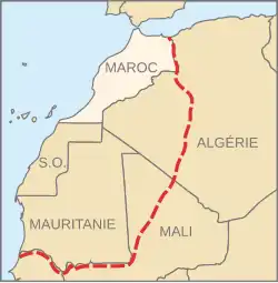 Vnitrozemím prochází vojenská hranice oddělující oblast plně ovládanou Marokem od území, na kterém operuje Polisario. Na této hranici vybudovalo Maroko ochranný val, který je vybaven prvky detekce a minovými poli. Délka valu, který vede od pobřeží na jihu až na sever a končí 200 km v marockém vnitrozemí, se uvádí 2 700 km (porovnáním s délkou hranice s Mauritánií se patrně jedná o celkovou délku valů vybudovaných Marokem v letech 1982-87). Val využívá členitost terénu, a tudíž je průběh vojenské hranice z hlediska geografického přirozenější.