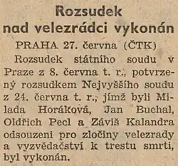 - ↑ Rozsudek státního soudu dopadl plnou vahou. Rudé právo. 9. 6. 1950, s. 3. Dostupné online.
