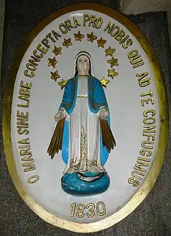 | Heslo | Ô Marie, conçue sans péché, priez pour nous qui avons recours à vous (francouzsky) Ó, Maria, bez hříchu počatá, pros za nás, kteří se k tobě utíkáme (česky) |