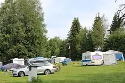 ![]() Veřejné tábořiště na levém břehu Teplé Vltavy poblíž bývalé osady Zahrádky. | |