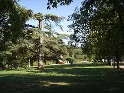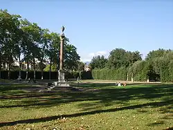 Spojení na hlavní křižovatce s hlavní cestou je označeno dvěma sochami, v pohledu na levé straně lze vidět nádrž s eliptickým květinovým záhonem uprostřed, který byl centrem jednoho z bludišť v této části zahrady.