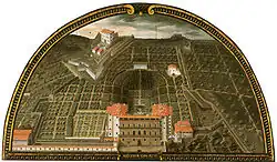 Zahrady Boboli na lunetě od autora Giusto Utense, z roku 1599 (Museo di Firenze com'era, Florencie)