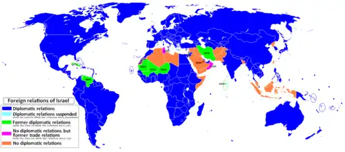 Zahraniční vztahy Izraele zahrnují diplomatické vztahy a mezinárodní dohody státu Izrael s jinými zeměmi. Izrael vstoupil do Organizace spojených národů 11. května 1949. V současnosti má Izrael vztahy se 163 zeměmi.[1]
