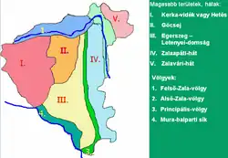 Největší sídla nacházející se na území pahorkatiny jsou města Zalaegerszeg a Nagykanizsa, mezi další města patří Lenti, Letenye, Őriszentpéter, Zalakaros a Zalalövő. Pahorkatinou protékají řeky Zala a Kerka, významnými potoky jsou Cserta, Szévíz a Válicka. Okrajově též protékají řeky Mura a Rába.