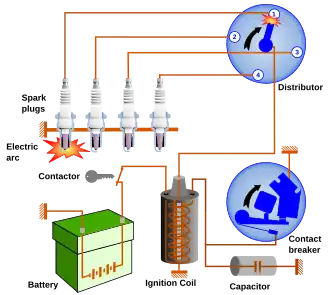 Stlačená směs ve válci zážehového motoru musí shořet krátce po průchodu pístu horním mrtvým bodem. Protože na okamžiku zažehnutí velmi záleží, zapaluje se směs u těchto motorů elektrickým výbojem, jiskrou vysokého napětí (řádově 20 kV) na kontaktech zapalovací svíčky. Impulz vysokého napětí se vyrábí přerušením elektrického proudu v zapalovací cívce či transformátoru. Tento proud vyrábí magneto nebo dynamo, poháněné z hřídele motoru, v moderních systémech tranzistorového a elektronického zapalování je zdrojem proudu baterie. Optimální okamžik pro vznik jiskry závisí na otáčkách motoru a dalších okolnostech (viz předstih).