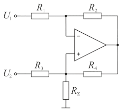 V praxi se však nejčastěji vstup U1 spojuje s nulovým potenciálem (tj. se zemí) a rezistory se volí stejné tj. R1=R2=R3=R4=R, potom platí jednodušší vztah: