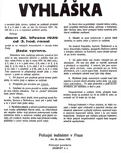 Obsazení části republiky dne 15. března 1939 Německem však vedlo k uspíšení účinnosti[19] - výnosem vrchního velitele německé armády Brauchitsche byl pravostranný provoz v Protektorátu Čechy a Morava zaveden dnem 17. března 1939.