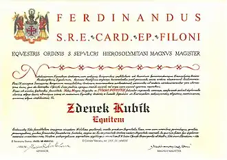 - ↑ Investitura nových rytířů Božího hrobu v pražské katedrále. Setkání středoevropských místodržitelů Řádu Božího hrobu [online]. [cit. 2023-11-11]. Dostupné online.