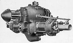 Dvouventilový vzduchem chlazený čtyřtaktní dvouválec měl při vrtání ø 84 mm a zdvihu 90 mm objem válců 998 cm³. Každý válec měl samostatný karburátor Amal s výškovou regulací vzduchu jako korektorem. Řízení plynu a předstihu zapalování se provádělo společnou páčkou, druhá páka ovládala korektor. Plyn se tedy ovládal pedálem, tak aby zapalování a výšková regulace směsi mohly být ovládány z pilotova sedadla. Zapalování Bosch, svíčky Lodge. Palivo bylo přiváděno ke karburátorům čerpadlem instalovaném na motoru. Mazání s olejovým filtrem bylo tlakové se suchou skříní. Olejová nádrž o objemu 2,5 litru byla umístěna v horní části skříně. Hmotnost motoru s vrtulovou hlavou, dvěma karburátory, palivovým čerpadlem a startérem činila přibližně 39 kg.[6] Motor byl vybaven tlakoměry a dálkovým teploměrem. Zapalovací magneto se nacházelo na hřídeli vrtule. Aby motor byl co nejkratší, měl reduktor ozubené dvoukolí s čelním ozubením. První kolo bylo na zadním konci klikového hřídele a pohánělo druhé ozubené kolo na vrtulovém hřídeli. Tento hřídel nepoháněl jen magneto zapalování, ale také vačkový hřídel. Agregát byl sice vyšší, ale především kratší, což je při stavbě letadel rozhodující. Pozoruhodné bylo, že motor vážil jen 39 kg. Bylo toho dosaženo, kromě jiného, elektronovým odlitkem skříně motoru.[7]