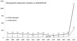 Zdiměřice bývaly dlouhodobě malou vesnicí, což se změnilo až po roce 2003, kdy v obci proběhla masivní výstavba rezidenčních domů a bytů. Jaroslav Schaller ve své knize Topographie des Königreichs Böhmen: Th. Kauržimer Kreis (Topografie království českého: Kouřimský kraj) z roku 1788 uvádí, že Zdiměřice tvořily tehdy 11 domů.[23] Kronika města Jesenice uvádí, že na konci roku 2000 žilo ve Zdiměřicích 98 obyvatel.[24] Podle sčítání lidu v roce 2001 žilo v Zdiměřicích 102 obyvatel; v současnosti (2016) je však jejich počet mnohonásobně vyšší a pohybuje se vysoko nad 1000 obyvatel. Počet obyvatel ke všemu dále narůstá. Jak ukazuje analýza věkového průměru obyvatelstva, tento přírůstek je většinou způsoben stěhováním celých rodin s dětmi.[25]