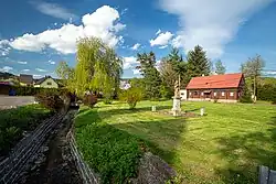 - Na návsi stojí mariánský sloup s plastikou svatého Jana Nepomuckého