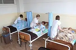 Ruské velkokněžny Olga a Taťána při péči o nemocné, 1915