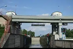 Jednolodní plavební komora je umístěna u pravého břehu. Má užitnou délku 85 m a šířku 12 m, hloubku nad záporníkem 3,5 m. Konstrukce je řešena jako monolitický polorám založený na kótě 208,60 m n. m., s úrovní dna 209,90 a koruny zdí 218,50 m n. m. V horním ohlaví jsou poklopová vrata Čábelkova typu pro přímé plnění plavební komory, dolní vrata jsou vzpěrná.[2]