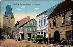![]() Čelní pohled na historickou budovu hotelu Zelený strom v Kadani | |