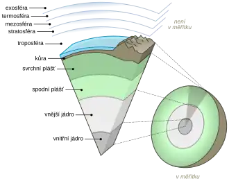 Zemské těleso se skládá z několika vrstev tzv. geosfér, které na sebe volně navazují. Liší se od sebe složením, hustotou, tlakem a teplotou. Byly detekovány na základě šíření seismických vln. Tyto geosféry jsou směrem od jádra řazeny soustředně, tedy obepínají jádro. Jejich rozložení v tělese je z největší části ovlivněno hmotností látek, ze kterých jsou složeny.