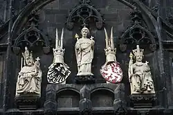 - ↑ Na vrcholu Svatováclavské koruny se nachází kříž, v němž byl uložen trn z Kristovy trnové koruny.