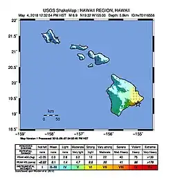 - ↑ M 6.9 - 16km SW of Leilani Estates, Hawaii. earthquake.usgs.gov [online]. [cit. 2018-05-05]. Dostupné online.
