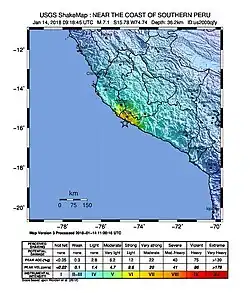 - ↑ M 7.1 - 40km SSW of Acari, Peru. earthquake.usgs.gov [online]. [cit. 2018-01-14]. Dostupné online.