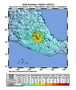 Zemětřesení v Pueble se odehrálo 19. září 2017 asi 55 kilometrů od města Puebla. Mělo sílu 7,1 Mw a jeho hypocentrum se nacházelo v hloubce 51 km.[1] Zemřelo při něm nejméně 370 lidí a je tak druhým nejsmrtelnějším zemětřesením roku 2017.