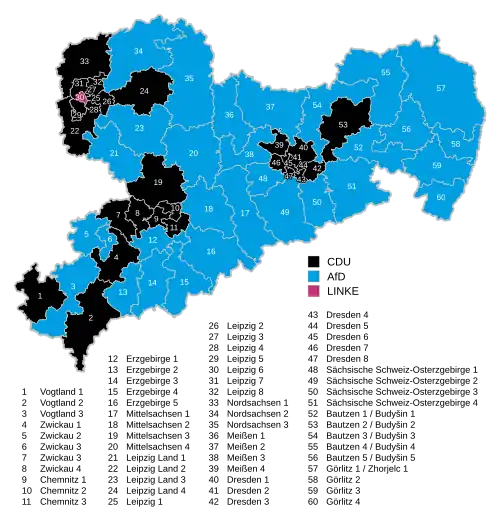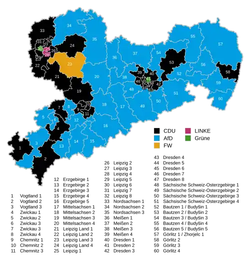 - ↑ Ticker: CDU und AfD stärkste Kraft in Sachsen [online]. [cit. 2024-09-02]. Dostupné online. (německy)