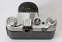 Na horním panelu přístroje se vpravo nachází páčka na natahování filmu s počítadlem snímků. Počítadlo je v podstatě nefunkční. Při natáhnutí filmu se sice posune, ale není nijak zajištěné, tudíž dochází k posunutí počítadla a konec filmu se pozná spíše podle toho, že páčka již nejde natáhnout. Vedle počítadla se nachází tlačítko na uvolnění filmu při převíjení a vedle něj kruhové tlačítko pro nastavení expozičního času.