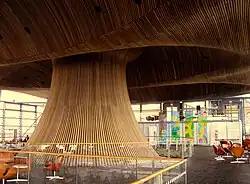 Obrovský pahýl zeravu obrovského je vystaven ve stromové části Montrealské botanické zahrady.