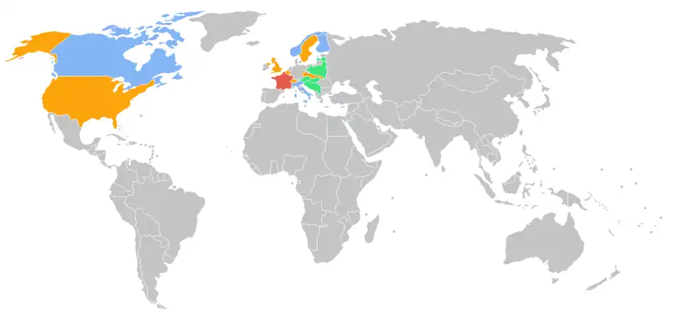 Kanada – Švýcarsko Belgie – Velká Británie Spojené státy – Francie |
