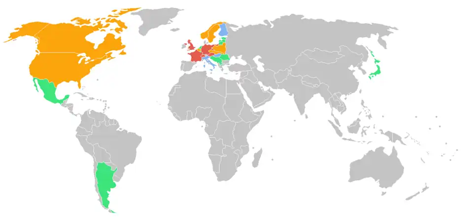 Mapa zúčastněných zemí