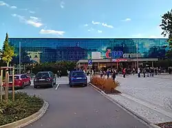 Před velkou i malou halou se nachází parkoviště pro 200 resp. 50 osobních vozidel. Přímo naproti velké hale je vybudován patrový parkovací dům s kapacitou 462 míst.