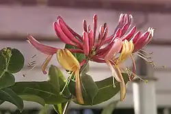 Detail květů zimolezu etruského (Lonicera etrusca)