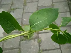 Větvičky jsou tenké a duté; borka na loňských výhonech je tenká, světlá, žlutohnědá, třepící se. Mladé listy a mladé výhony jsou jemně ochlupené.