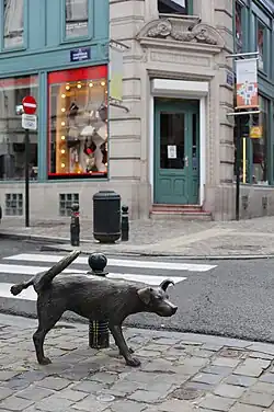 Socha čůrajícího psa se od roku 1998 nachází na rohu ulic Rue des Chartreux/Kartuizersstraat a Rue du Vieux-Marché/Oude Graanmarkt. Slovo „zinneke“ označuje v bruselské vlámštině psího křížence.