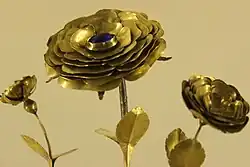 Obrázky, zvuky či videa k tématu Zlatá růže na Wikimedia Commons - Zlatá ruža – symbol pápežskej priazne (slovensky)