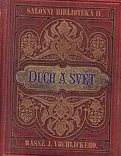 - Duch a svět (1878), úvodní básnická sbírka cyklu obsahující Prolog a Epilog (vyjadřují básníkovo přesvědčení o síle lidského ducha, který v harmonii s přírodou odhalí všechna tajemství) a mezi nimi čtyři tematicky a časově rozdílné části: Ohlasy pravěku (oddíl zpracovává básnickou fantazií modifikované příběhy Starého zákona), Helénské motivy (staré Řecko básník považuje za zlatou dobu lidstva a za zdroj umění), Osm legend středověkých (legenda je použita pouze jako název, příběhy vyjadřují básníkovo evolucionistické přesvědčení) a Problémy (oddíl není historický, básník se v něm vyznává ze svých současných duševních zápasů a rozporů).[7]