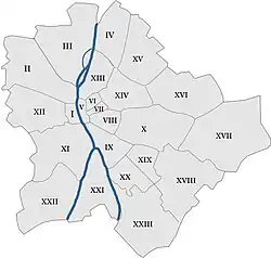 Budapešť se člení na 23 obvodů (maďarsky kerületek, jednotné číslo kerület). Obvody mají historický název a užívají své vlastní znaky.