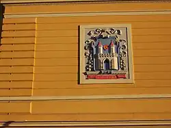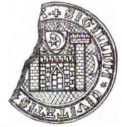 Tento znak město přijalo pravděpodobně před rokem 1462 během husitských válek zasazením totožné kompozice z městského pečetidla do štítu.